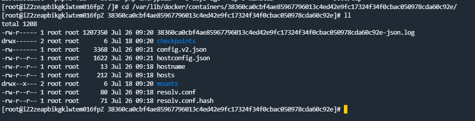 cd /var/lib/docker/containers/容器id